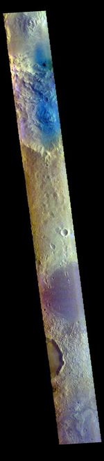 The THEMIS VIS camera contains 5 filters. The data from different filters can be combined in multiple ways to create a false color image. These false color images may reveal subtle variations of the surface not easily identified in a single band image. Today's false color image shows part of Arabia Terra. Arabia Terra is one of the oldest surface regions on Mars and contains a large variety of features. This image is located east of Mawrth Valles.