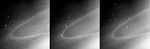This sequence of images shows a faint arc of material in Saturn's G ring, a tenuous ring outside the main ring system. These images were each taken about 45 minutes apart. During this time, the arc (slightly brighter than the ring itself) moves around the outer edge of the ring.