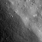 Contact between Archimedes crater wall (bottom left) and floor (upper right). The floor is smooth and relatively flat compared to the sloped and rough elephant skin textured crater wall. LROC NAC M119883761, image width is 800 meters.