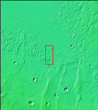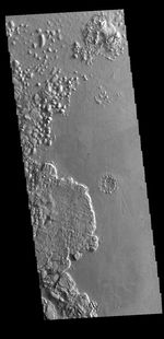 This region of arcuate (or curved) fractures is located north of Apollinaris Mons, on the margin with Elysium Planitia.