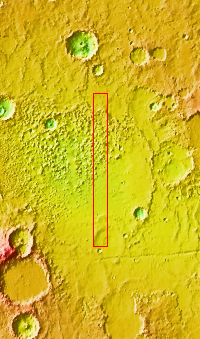 The THEMIS VIS camera contains 5 filters. The data from different filters can be combined in multiple ways to create a false color image. These false color images may reveal subtle variations of the surface not easily identified in a single band image. Today's false color image shows part of Ariadnes Colles. The term colles means hills or knobs. In this false color combination the hills stand out against the darker surrounding plains. This difference is due to the amount of dust covering the hills versus the plains.