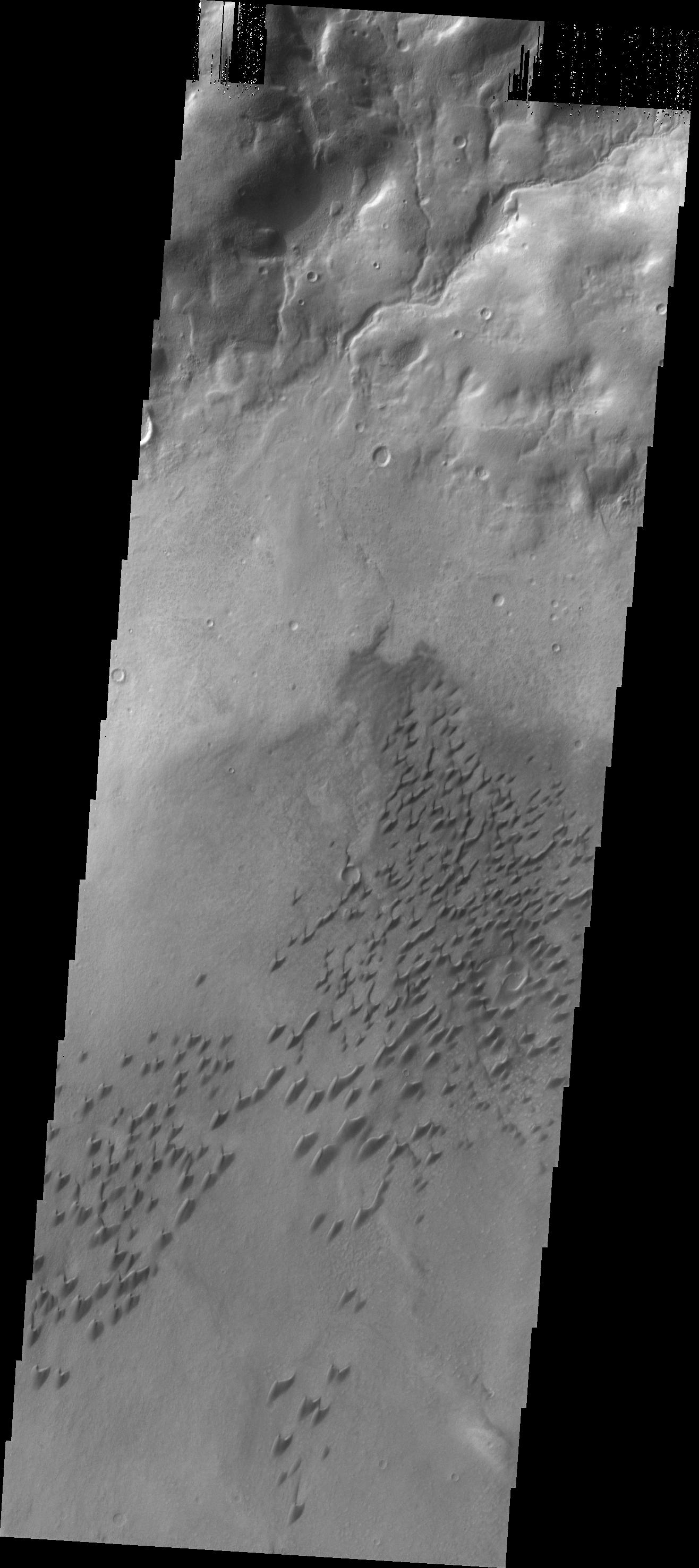 This VIS image shows part of the dune field located on the floor of Arkhangelsky Crater.