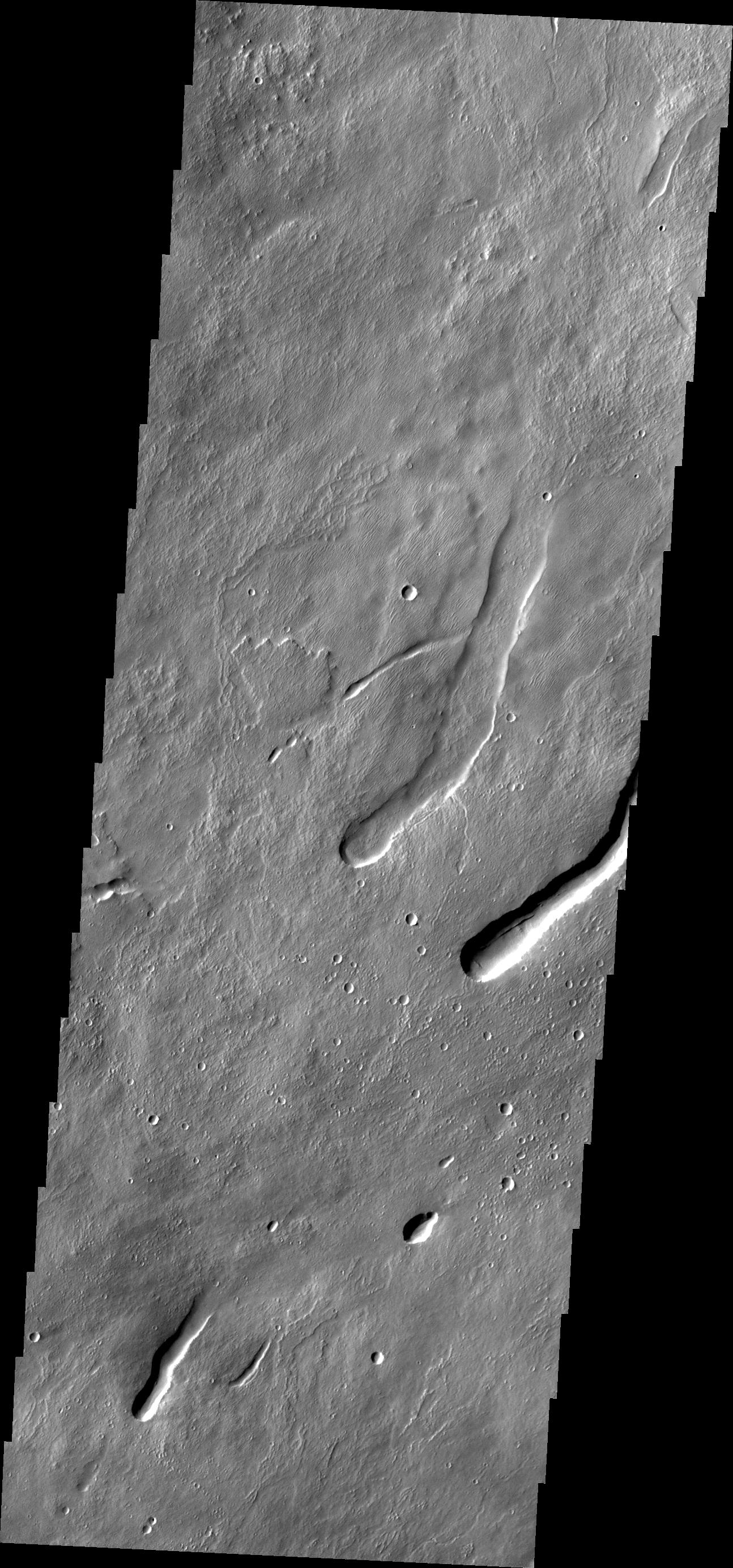 This VIS image of the northern flank of Arsia Mons shows collapse/vent features.