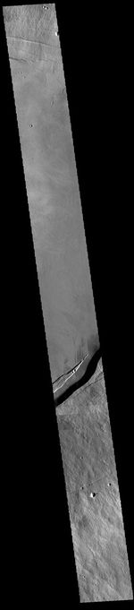 This VIS image shows part of the summit caldera on Arsia Mons.