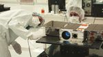 Left to right: Electrical Test Engineer Esha Murty and Integration and Test Lead Cody Colley prepare the ASTERIA spacecraft for mass-properties measurements in April 2017 prior to spacecraft delivery ahead of launch. ASTERIA was deployed from the International Space Station in November 2017.