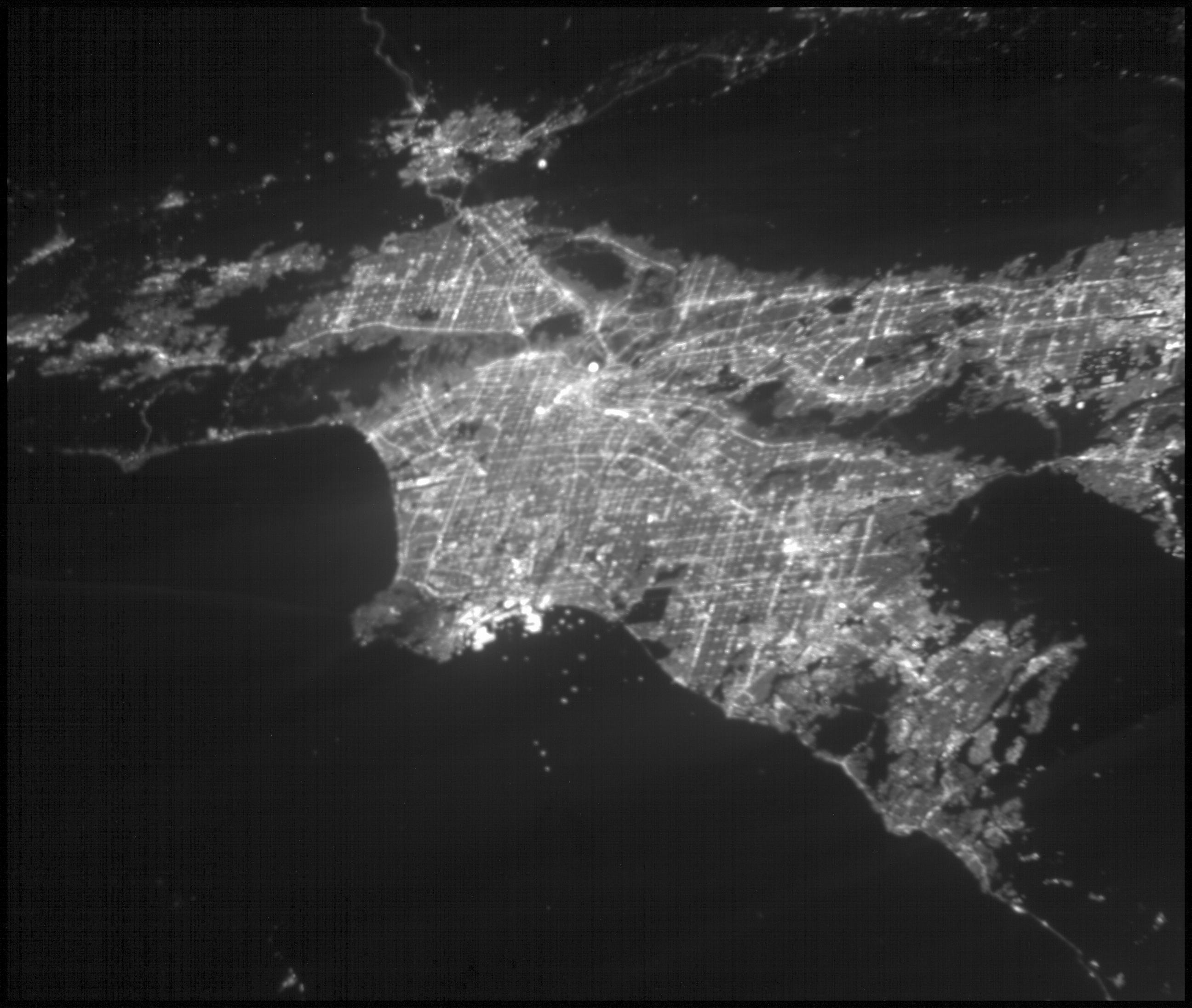 This image of the greater Los Angeles area was taken on March 29, 2019, by ASTERIA, the Arcsecond Space Telescope Enabling Research in Astrophysics satellite. The Port of Long Beach is visible near the center of the image.