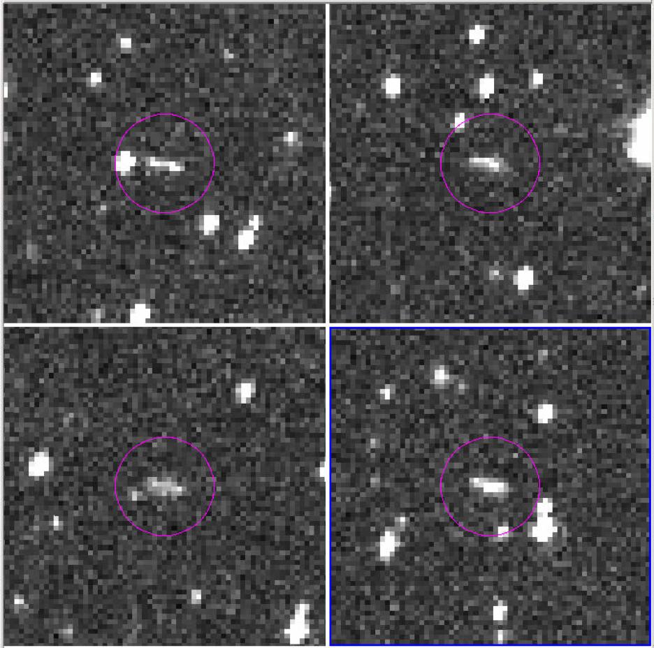 These are the discovery observations of asteroid 2018 LA from the Catalina Sky Survey, taken June 2, 2018. About eight hours after these images were taken, the asteroid entered Earth's atmosphere (about 9:44 a.m. PDT, 12:44 p.m. EDT, 16:44 UTC, 6:44 p.m. local Botswana time), and disintegrated in the upper atmosphere near Botswana, Africa.