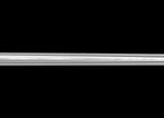 The main rings are closer to the spacecraft than Atlas is, and the moon appears as only a small, white dot in the center of the image. This view looks toward the northern, sunlit side of the rings from just above the ringplane. See PIA08906 and PIA08405 for other views of Atlas (19 miles, 30 kilometers across).