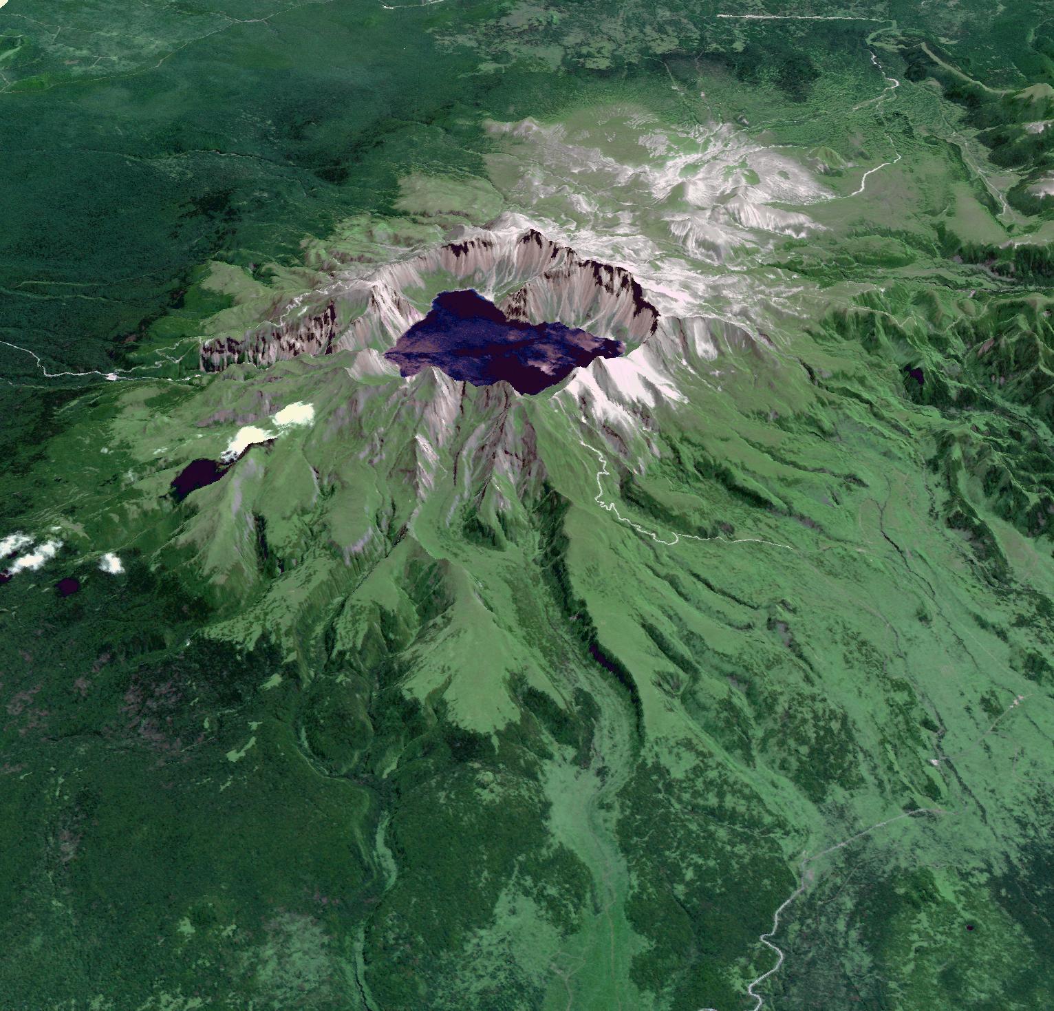 Baektu Mountain is an active volcano on the border between North Korea and China. Rising to 2744 m, its summit caldera is filled with a crater lake, Heaven Lake. The crater was created by a colossal eruption in 970, spreading volcanic ash as far as northern Japan. Its last eruption was in 1903. The image was acquired August 19, 2003, and is located at 42 degrees north, 128 degrees east.