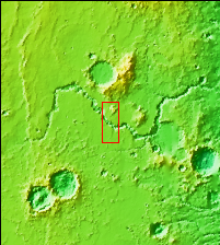 Today's VIS image shows a section of Bahram Vallis. This channel is located in northern Lunae Planum, south of Kasei Valles. Bharam Vallis drains from the higher elevations of Lunae Planum towards the Chryse Planitia basin. This channel is over 300km long (186miles).