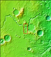 Today's VIS image shows a section of Bahram Vallis. This channel is located in northern Lunae Planum, south of Kasei Valles. Bharam Vallis drains from the higher elevations of Lunae Planum towards the Chryse Planitia basin. This channel is over 300km long (186miles).