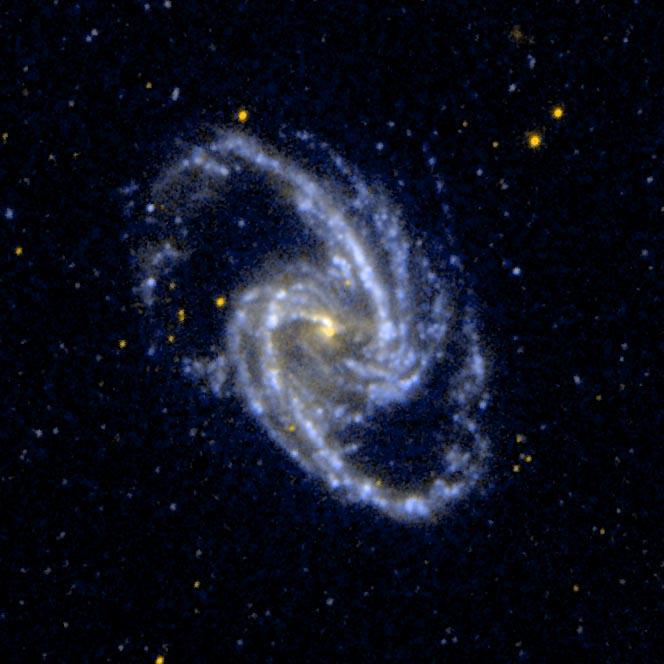 Photojournal NavigationSciencePhotojournalBarred Spiral Galaxy NGC...Photojournal HomePhotojournal SearchLatest ContentGalleriesFeedbackRSSAbout 1 Min Read Barred Spiral Galaxy NGC 1365 PIA07901 Credits: NASA/JPL-Caltech/SSC Image Addition Date:05/05/2005Target:NGC 1365Mission(s):GALEX (Galaxy Evolution Explorer)Spacecraft(s):GALEX (Galaxy Evolution Explorer)Instrument(s):GALEX Telescope Downloads Barred Spiral Galaxy NGC 1365 JPEG (50.88 KB) Barred Spiral Galaxy NGC 1365 TIFF (1.26 MB) Description Ultraviolet image of the barred spiral galaxy NGC 1365, which is a member of the Fornax Cluster of Galaxies. Keep Exploring Discover More Topics From Photojournal Photojournal Search Photojournal Photojournal’s Latest Content Feedback