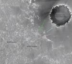 This image from the Mars Orbiter Camera aboard NASA's Mars Global Surveyor highlights the Mars Exploration Rover Opportunity's approach toward "Beagle Crater."