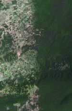 The border between Belize and Guatemala illustrates striking differences in land use practices. In a study of deforestation published in 2016, Chicas and co-authors found that in their study area between 1991 and 2014, on the Guatemalan side of the border forested land declined 32%; in Belize, forested area declined 11%. In part of their study area shown in this image, the difference is more dramatic: near-pristine forest in Belize on the right, and agricultural fields in Guatemala on the left. The image was acquired May 10, 2016, covers an area of 27 by 41 km, and is located at 16.7 degrees north, 89.2 degrees west.