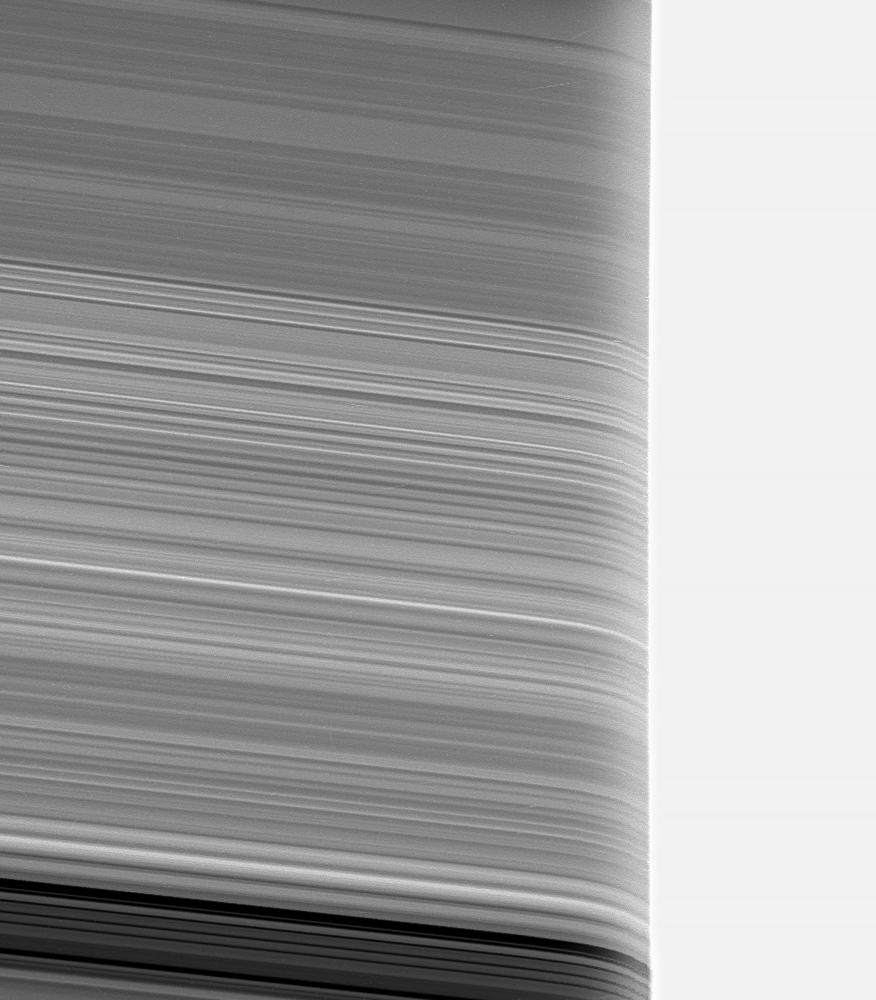 The atmosphere acts like a lens in refracting (bending) the light reflected from the rings. As the rings pass behind the overexposed limb (edge) of Saturn as seen from Cassini, the ring structure appears to curve downward due to the bending of the light as it passes through the upper atmosphere.