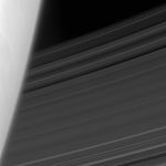Saturn's C ring emerges from behind the planet's hazy limb.