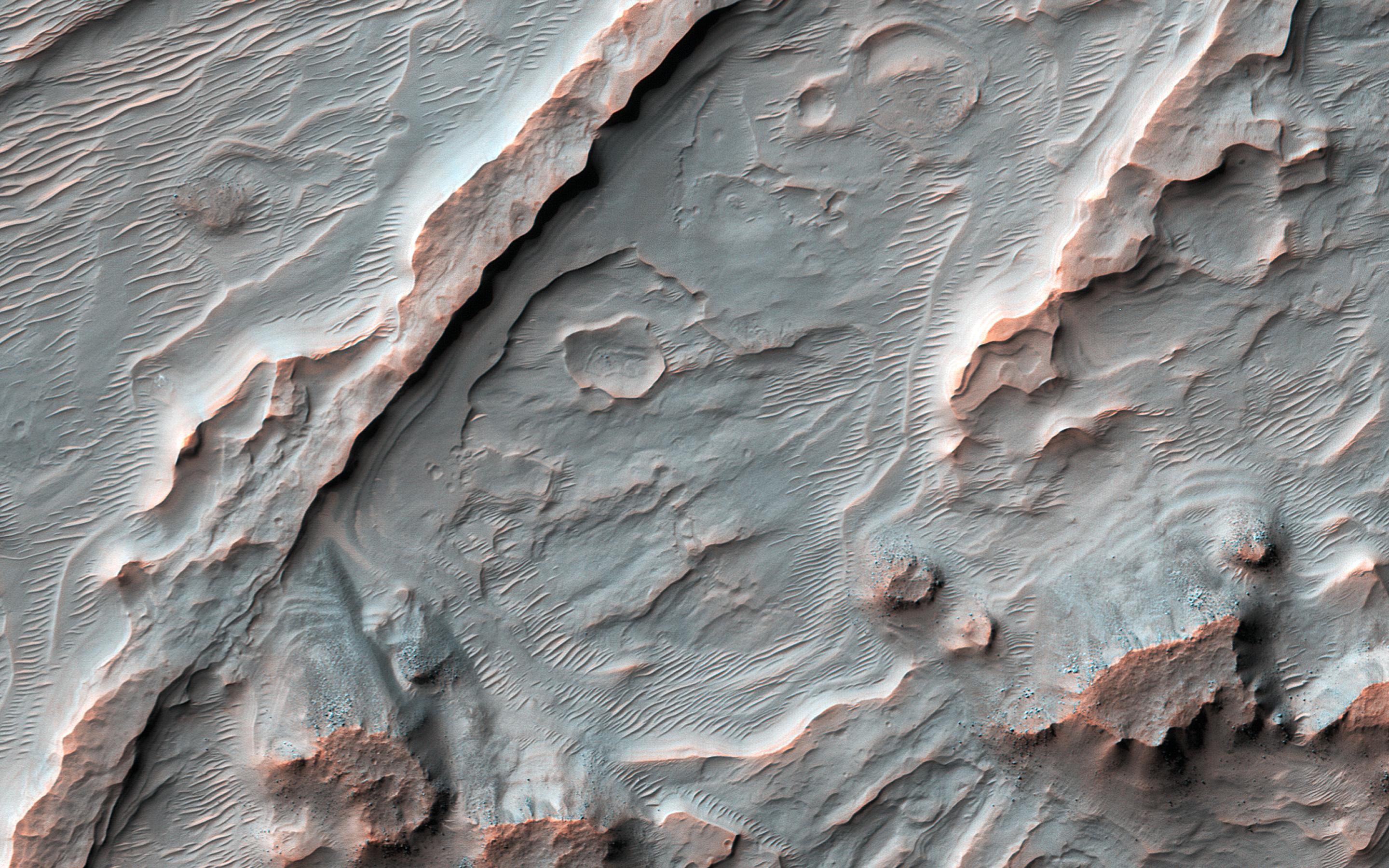 Shown in this image from NASA's Mars Reconnaissance Orbiter (MRO) are alluvial fans, fan-shaped deposits emerging from regions of steep topography. Alluvial fans on Mars are thought to be ancient and record past episodes of flowing water. This image shows part of one of those fans, which has been eroded.