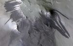 In this case though, the impact and explosion that made the crater seems to have set off many of these downhill slumps of dust simultaneously. This could have happened from the explosion's blast wave passing through the air or the shaking of the ground that it caused.
