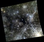 At the center of this scene is an area of dark, deep blue terrain. MESSENGER scientists refer to this as the "Low Reflectance Material (LRM)." Besides being dark across all wavelengths, the LRM reflects less light at longer wavelengths than does average Mercury material. Our eyes perceive light at the long wavelength end of the visible spectrum as red, and the short end as blue. Hence the LRM is said to have "blue" color relative to Mercury as a whole. Named craters in the scene include Kuiper, Yeats, Dominici, and Homer.