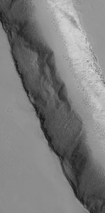 This Mars Global Surveyor (MGS) Mars Orbiter Camera (MOC) image shows a 1.5 meters per pixel (~5 ft/pixel) view of the interior of a trough, formed by faulting, on the lower southwest flank of Biblis Patera, a volcano in the Tharsis region of Mars. Boulders tend to be most common in volcanic regions, attesting to the hardness of the volcanic rock. In this case, the boulders and surrounding terrain have been largely mantled with dust.