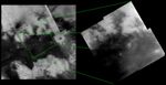The new mosaic at the right is centered on 11 degrees north latitude, 27 degrees west longitude. The image has been rotated so that north is up. Each of the four frames consists of five individual images that have been added together and enhanced to bring out surface detail and reduce noise, although some camera artifacts remain.
