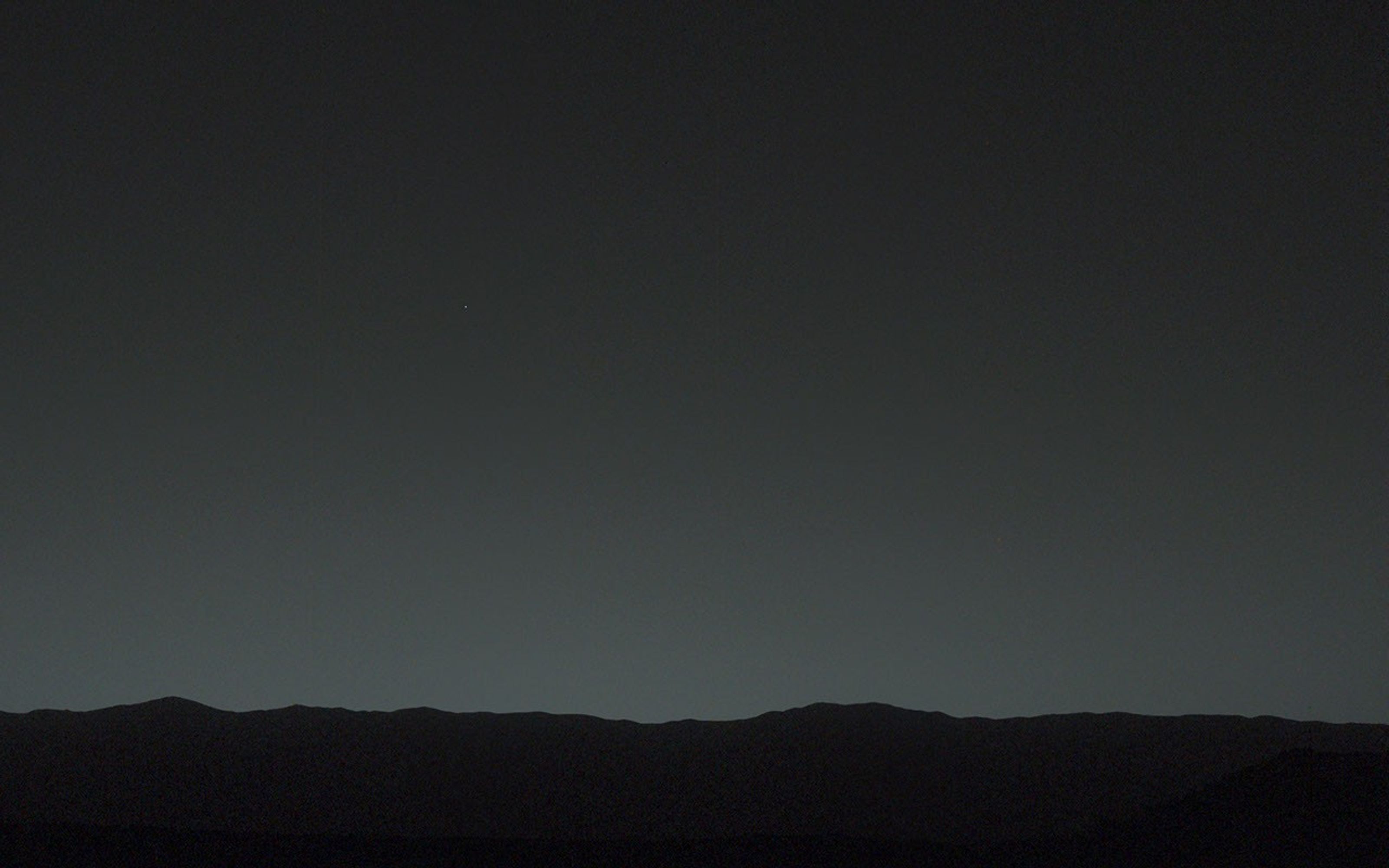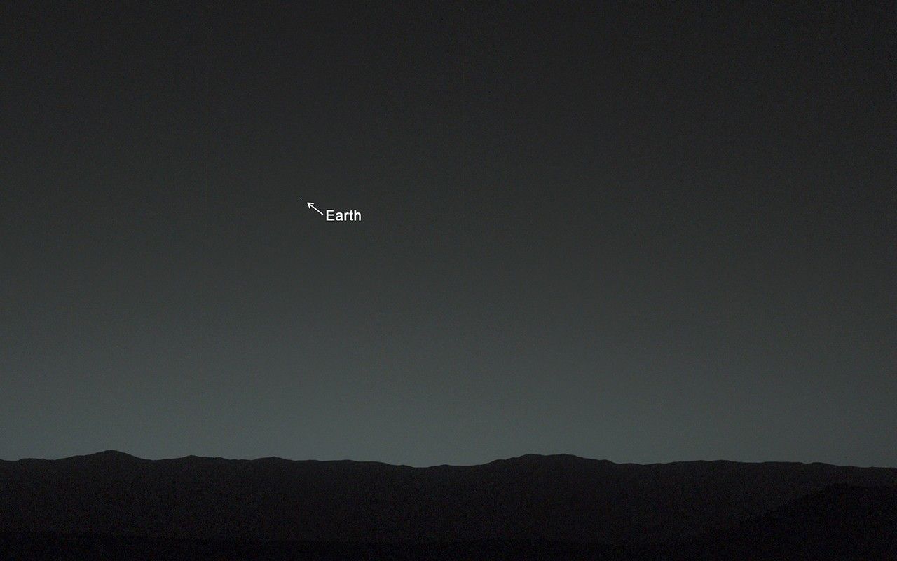 This view of the twilight sky and Martian horizon taken by NASA's Curiosity Mars rover includes Earth as the brightest point of light in the night sky. Earth is a little left of center in the image, and our moon is just below Earth.
