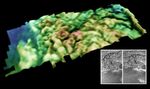 A stereo pair of images (insert) was acquired from the Huygens descent imager/spectral radiometer. The left image was acquired from 9 miles (14.8 kilometers) above the surface with the high resolution imager; the right from 4 miles (6.7 kilometers) altitude with the medium resolution imager.