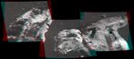 This stereo view combines images from the two blue (430-nanometer) filters in the Pancam's left and right "eyes." The image should be viewed using red-and-blue stereo glasses, with the red over your left eye.