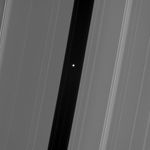 Pan (26 kilometers, or 16 miles across) cruises the Encke gap (325 kilometers, or 200 miles wide) with several faint ringlets.