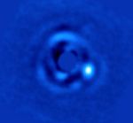This image shows brown dwarf HIP 79124 B, located 23 times as far from its host star as Earth is from the sun. The vortex coronagraph, an instrument at the W.M. Keck Observatory, was used to suppress light from the much brighter host star, allowing its dim companion to be imaged for the first time.