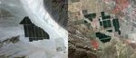 On February 15, 2015 the Desert Sunlight solar project in California's Mojave Desert became operational. The 550-megawatt plant generates enough electricity to power 160,000 average homes. Covering an area of 16 km2, the 8.8 million cadmium telluride photovoltaic modules take advantage of the more than 300 days of sunshine. Desert Sunlight joins the similar-sized Topaz Solar Farm in San Luis Obispo County, CA, that became operational in June, 2014. The Desert Sunlight image (left) was acquired March 12, 2015 and is located at 33.8 degrees north, 115.4 degrees west; the Topaz image (right) was acquired September 11, 2014 and is located at 35.4 degrees north, 120.1 degrees west. Each image covers an area of 10.5 x 12 km.