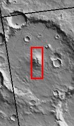 The degraded remains of this crater central peak have a surface cover that is characteristic of high latitudes. This type of surface material is thought to be a mixture of dust and ice. The nameless crater that this central peak is found in is approximately 150 km in diameter and is located in the southern highlands.
