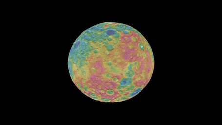 This animation shows a color-coded map from NASA's Dawn mission revealing the highs and lows of topography on the surface of dwarf planet Ceres.