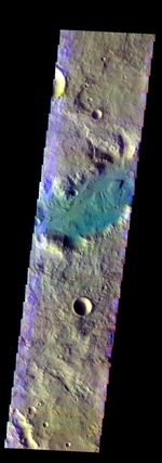 The THEMIS VIS camera contains 5 filters. The data from different filters can be combined in multiple ways to create a false color image. These false color images may reveal subtle variations of the surface not easily identified in a single band image. Today's false color image shows part of an unnamed channel in Terra Cimmeria.