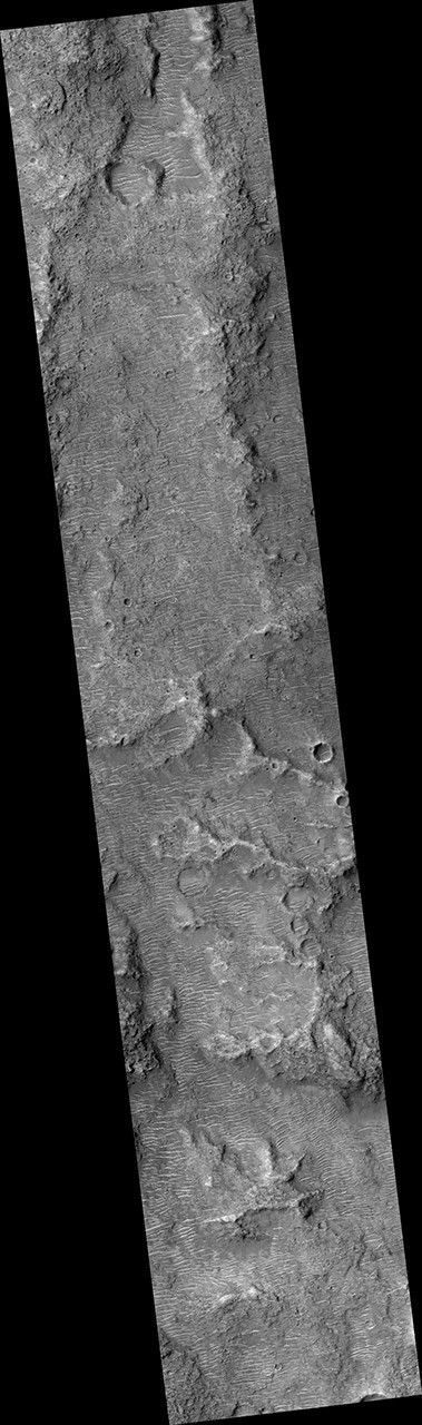 This enhanced color image from NASA's Mars Reconnaissance Orbiter (MRO) shows the heavily channeled and ancient southern highlands of Mars. The elongated and jagged features are windblown dunes, perhaps hardened and eroded.