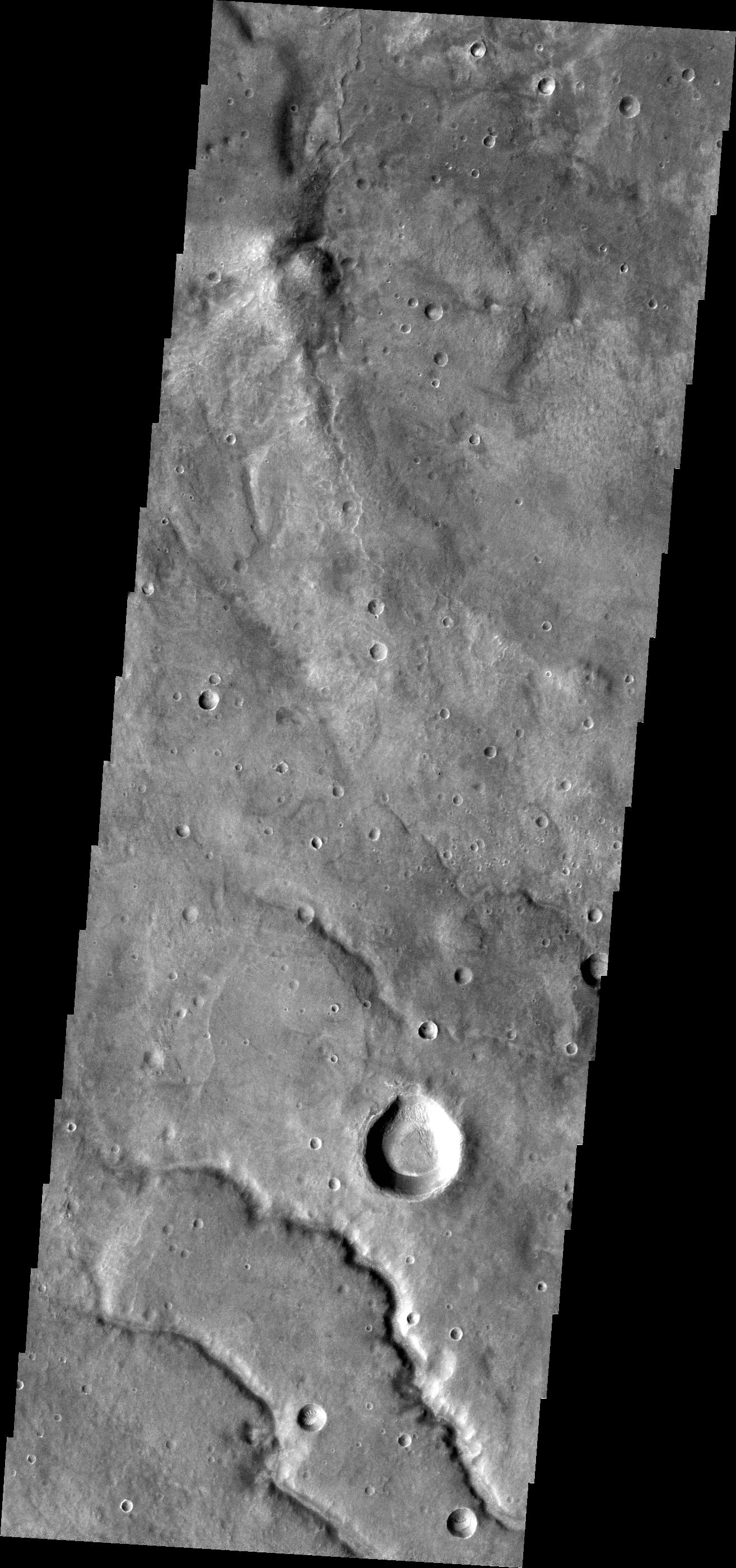 The channels in this VIS image are draining from Coracis Fossae toward Bosporos Planum.