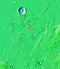 This small region of hills appears to be forming from the fractured material just south of it. This material is the northern extension of Zephyria Planum.