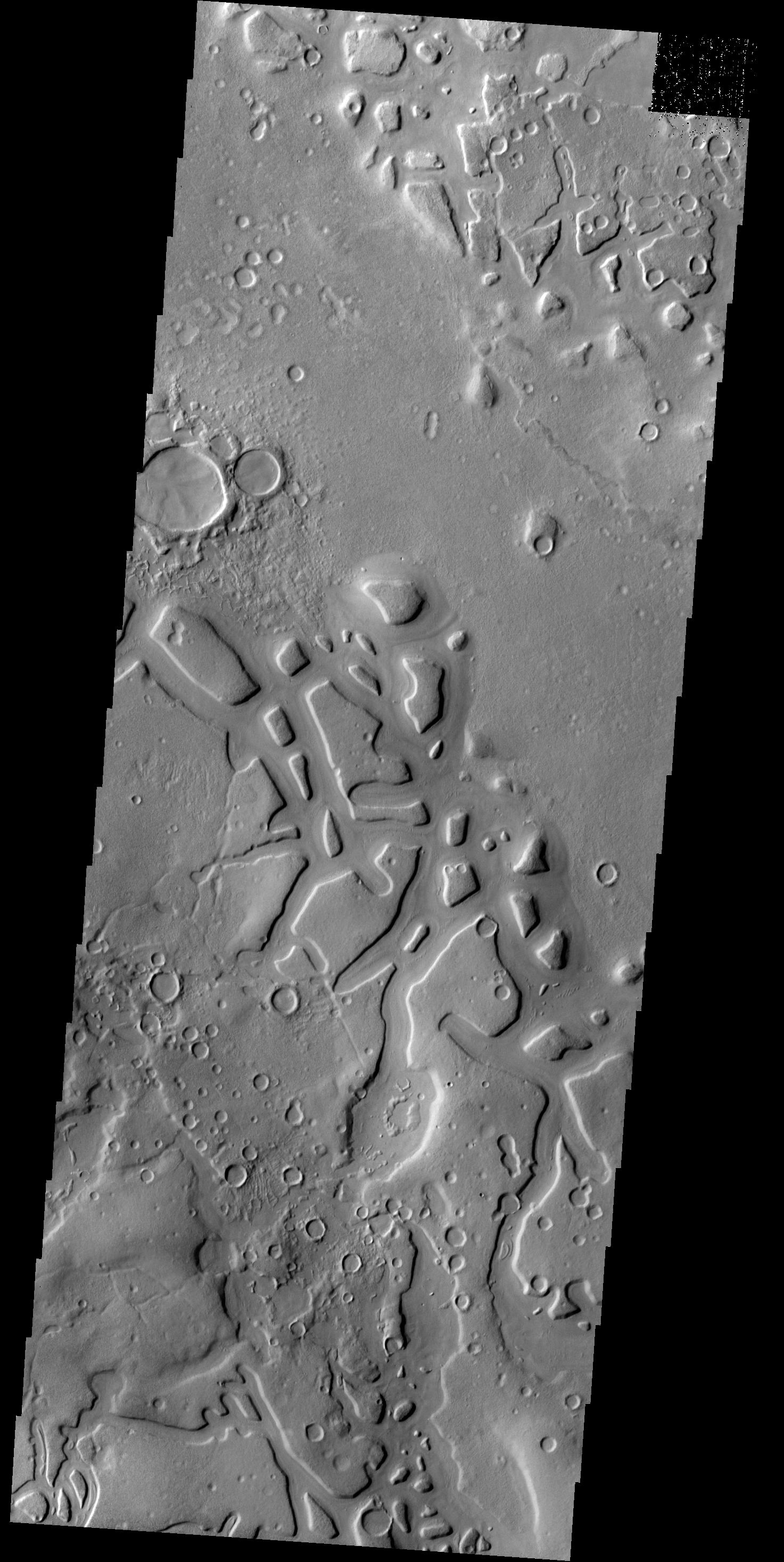 Regions of mesas and channels are termed chaos. This region on the margin of Terra Sabaea has several areas of chaos.