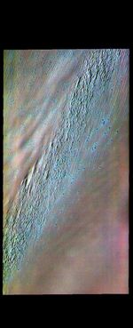 The THEMIS VIS camera contains 5 filters. The data from different filters can be combined in multiple ways to create a false color image. These false color images may reveal subtle variations of the surface not easily identified in a single band image.