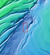 This false color image is located near the head of Chasma Boreale, a large trough in the north polar cap. The floor of the trough is mostly ice free. The linear features in the image are wind driven erosion of the trough floor.