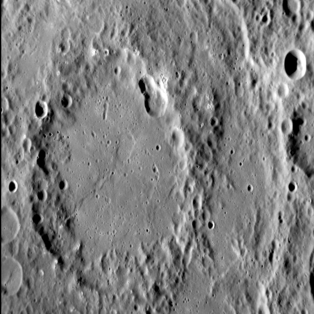 We last saw the 200-km-diameter Chekhov impact basin during a solar storm at Mercury. In this image, with north to the bottom, the inner portion of this peak-ring basin is visible -- as are the tectonic landforms to which it plays host. These structures appear to be lobate scarps, formed when one block of crust thrusts up and over another, in response to the global contraction of Mercury as its core cooled and solidified.