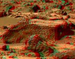 The composite color frames that make up this anaglyph were produced for both the right and left eye of the IMP. These composites consist of 7 frames in the right eye and 8 frames in the left eye, taken with different color filters that were enlarged by 500% and then co-added using Adobe Photoshop to produce, in effect, a super-resolution panchromatic frame that is sharper than an individual frame would be. These panchromatic frames were then colorized with the red, green, and blue filtered images from the same sequence. The color balance was adjusted to approximate the true color of Mars.