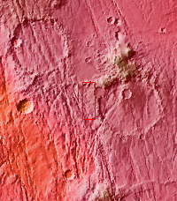 The fractures in this VIS image are part of Claritas Fossae. Note the small, bright dunes in the deep furrow on the bottom left of the image.