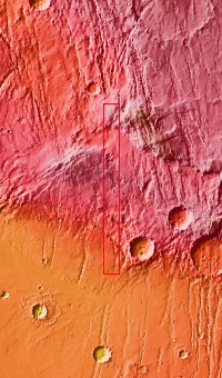 The THEMIS VIS camera contains 5 filters. The data from different filters can be combined in multiple ways to create a false color image. These false color images may reveal subtle variations of the surface not easily identified in a single band image. Today's false color image shows part of Claritas Fossae. The graben filled highlands are bounded by Solis Planum to the northeast and Icaria Planum to the southwest. The linear features (fossae) are graben, a tectonic feature created when blocks of material subside between paired faults. Extensional tectonic forces are responsible for graben formation. While close to the Tharsis region, it is thought that Claritas Fossae formed prior to the large lava flows located north of this image.