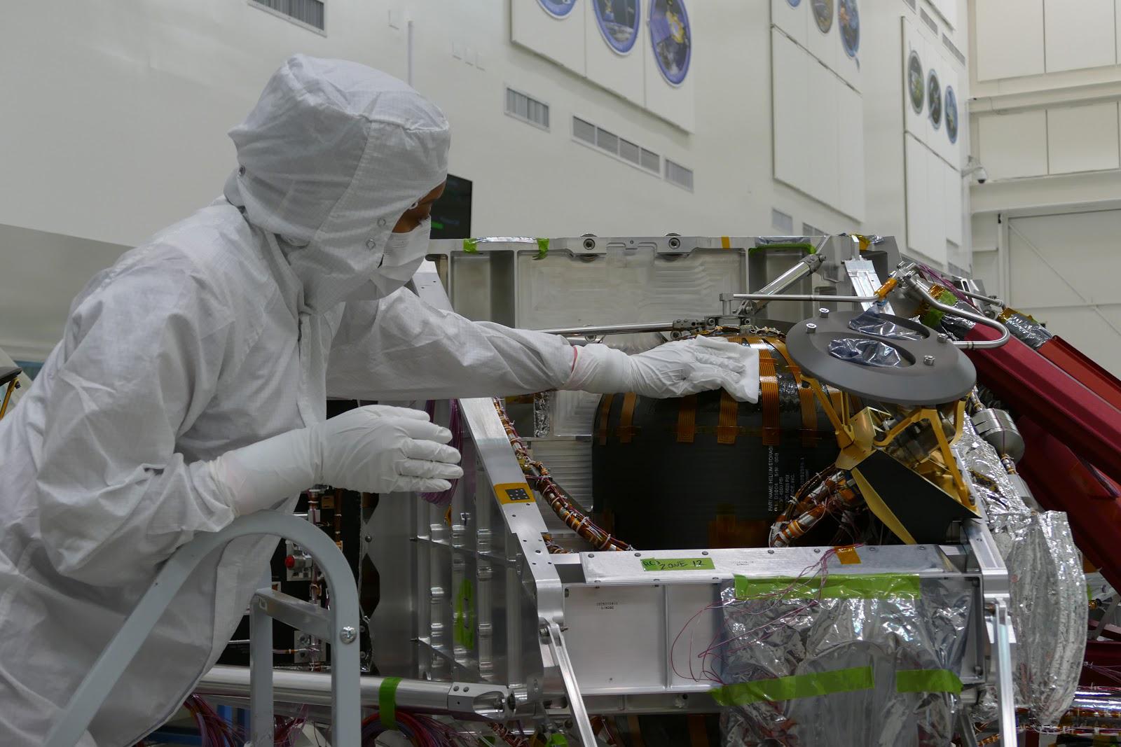 Wiping down hardware is part of the strategy to limit the number of Earth microbes going to the Red Planet for NASA's Mars 2020 Perseverance mission. This cleaning takes place in the Spacecraft Assembly Facility clean room at NASA's Jet Propulsion Laboratory in Southern California.