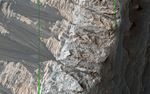 There are large gullies and sediment fans along the steepest slopes. Elsewhere on Mars, such slopes are actively eroding in before-and-after HiRISE images, so this would be a good location to observe again in a future year. Linear gaps in data coverage on the bright sun-facing slopes are locations where the image data is saturated.