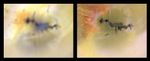 The most dramatic difference between these two images is that the volcanic plume that was active in March 1998 and earlier had stopped erupting by July 1999. The rising core of the umbrella-shaped plume can be seen in the 1998 image as a bluish spot in the center of the dark lava. Dark and bright spokes of material falling away from the core are also visible. When it falls back to the ground, this material makes circular white and yellow deposits around the vent. The white deposits are thought to be composed mostly of sulfur dioxide that left the volcanic vent as a vapor and condensed into a frost as the gases expanded into the near-vacuum of Io's atmosphere. Interestingly, red plume material has only been deposited to the northwest. This might be the result of small pockets of boiling sulfur that produce droplets of red sulfur blown outward by the main plume. Most of the other, more subtle color variations around Zamama are likely to be the result of different lighting conditions that existed when the two images were taken.