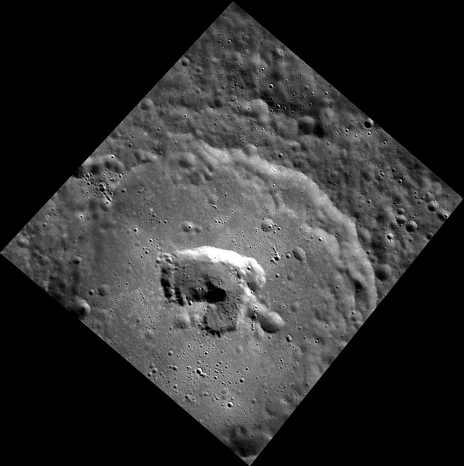 Prominent near the center of the degraded crater To Ngoc Van is an irregularly shaped pit. Examples of pit-floor craters have been identified across Mercury's surface and are likely formed by past volcanic activity. To Ngoc Van was named in 2009 in honor of the 20th century Vietnamese painter.
