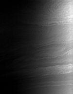 Saturn's clouds billow and swirl in the turbulent zones of shear between eastward- and westward-flowing jets. This view looks toward the terminator on Saturn, where night gives way to day.