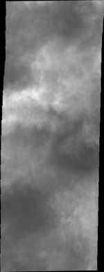 This VIS image had been targeted on the dunes on the floor of Charlier Crater. Unfortunately, clouds are obscuring the view of the surface.
